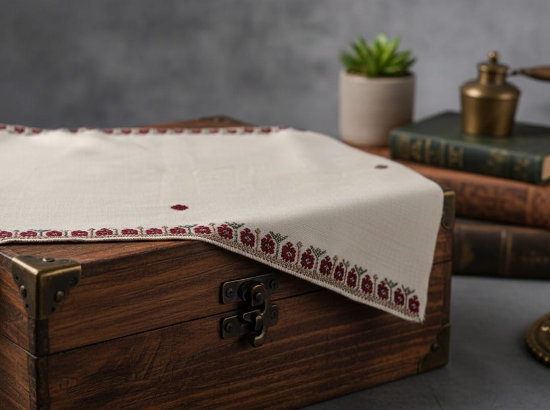 Color: Ivory With Maroon Embroidery