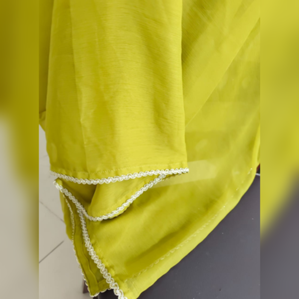 Discover timeless elegance with this pure chiffon dupatta. Crafted from beautifully sheer, flowing fabric, it offers an ethereal drape and a luminous quality that catches the light. The dupatta’s delicate edges are finished with classic tassels for a graceful fall. A versatile and essential accessory, it lends a touch of fluid sophistication to any outfit, making it perfect for festive occasions, formal gatherings, or elevating your everyday ethnic wear.