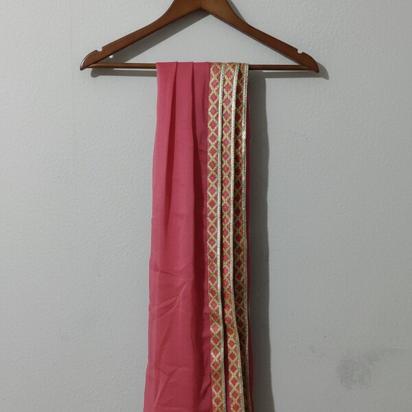 Discover timeless elegance with this pure chiffon dupatta. Crafted from beautifully sheer, flowing fabric, it offers an ethereal drape and a luminous quality that catches the light. The dupatta?s delicate edges are finished with classic tassels for a graceful fall. A versatile and essential accessory, it lends a touch of fluid sophistication to any outfit, making it perfect for festive occasions, formal gatherings, or elevating your everyday ethnic wear.