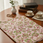 The elegance is born from the block printing technique itself—a hands-on, rhythmic press that leaves a subtle, embossed texture perceptible to the touch. This human signature distinguishes it from the flat perfection of digital prints